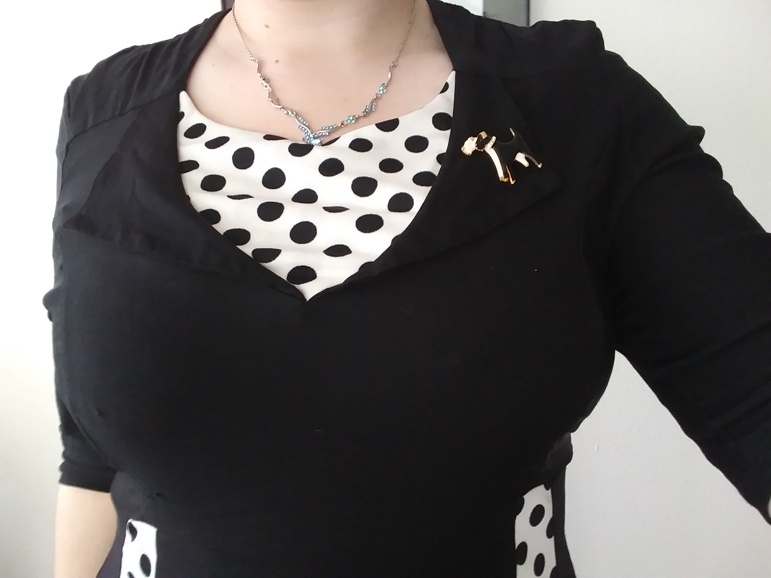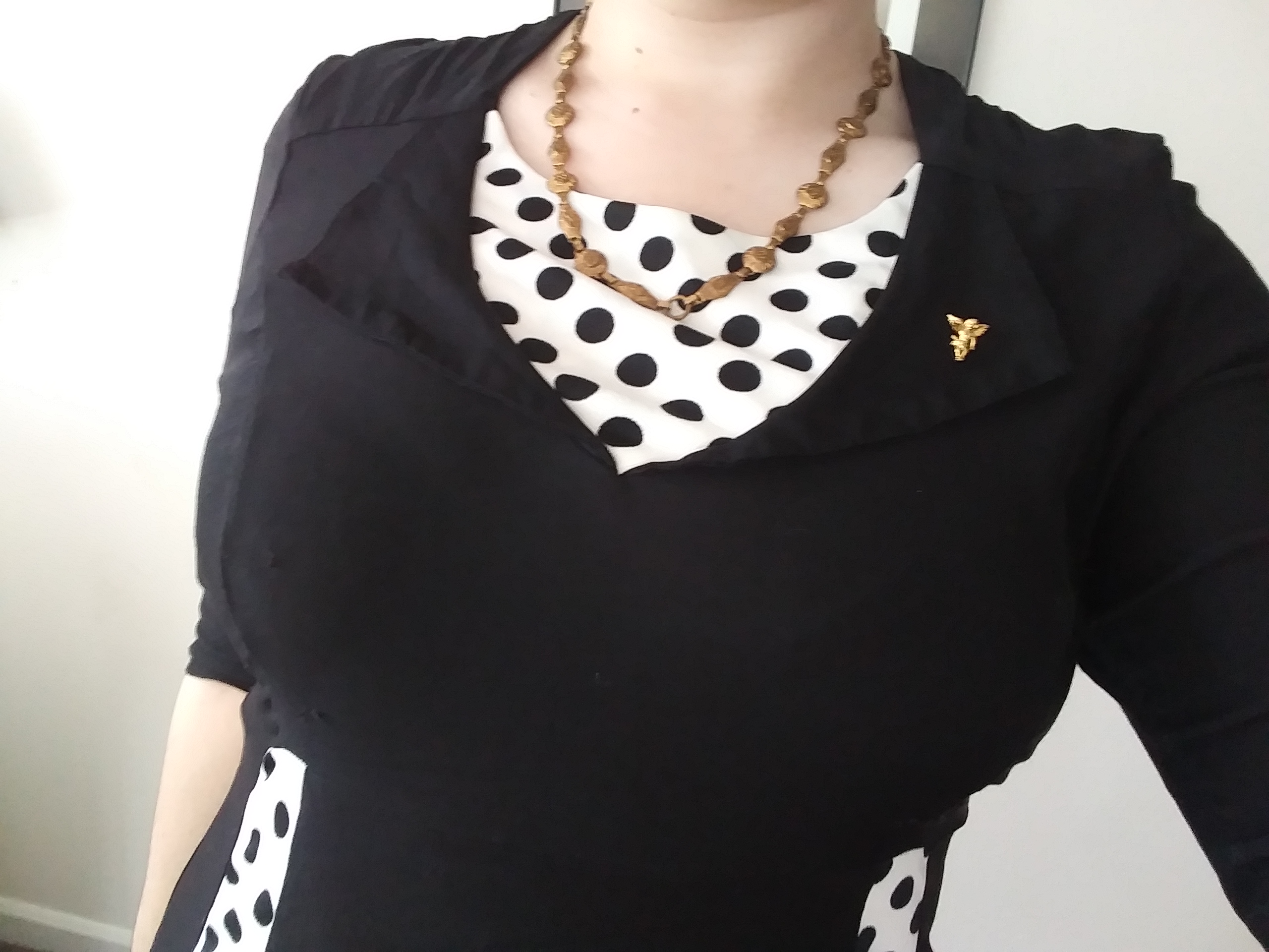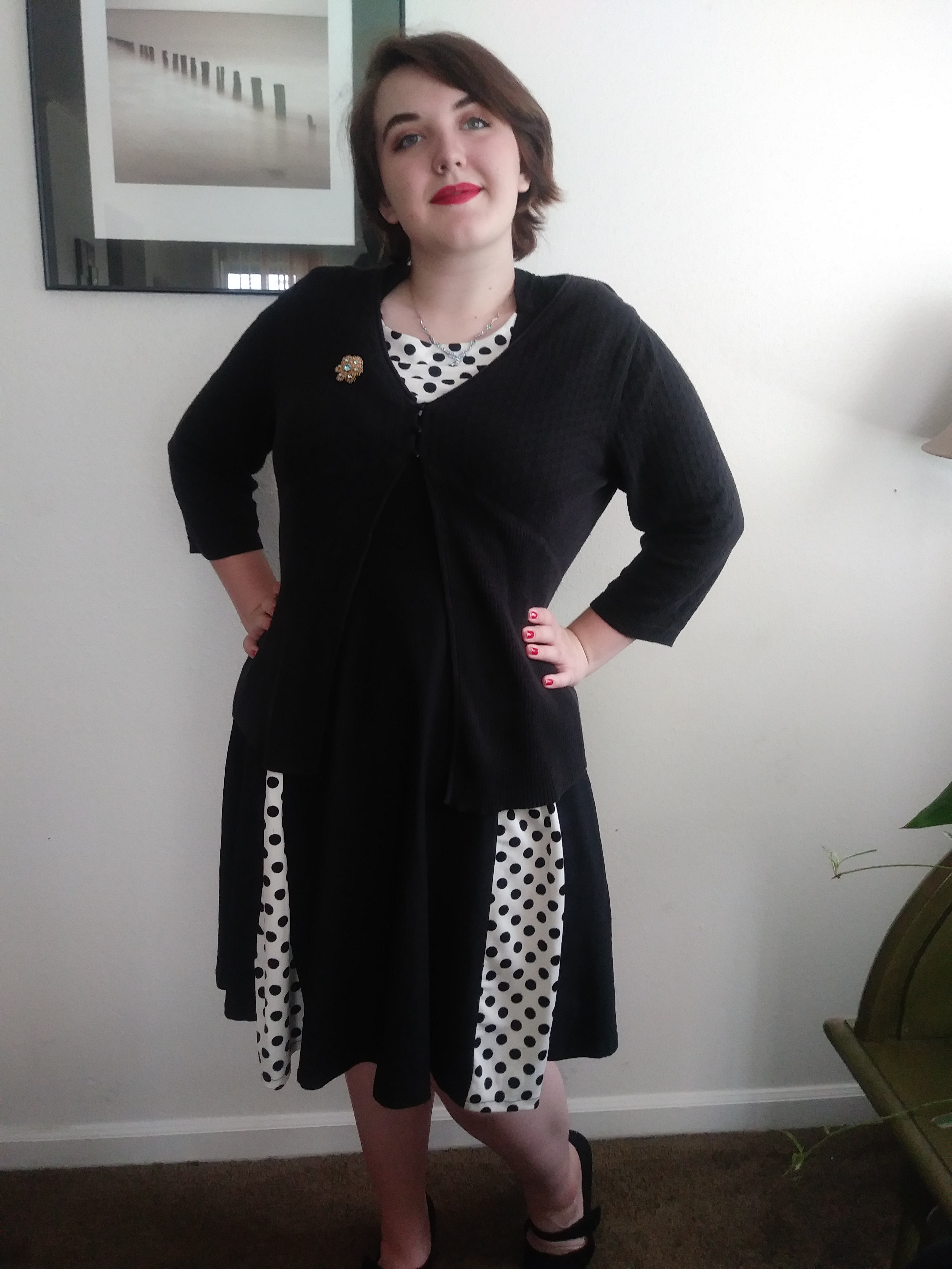 I tried so, so long to pretend to love this dress, I really did. Don’t get me wrong, I don’t hate it it’s just not vintage in anyway beside’s the silhouette. When I had originally purchased it the picture didn’t show any polka dots and was just a plain black, nothing else and that’s just not what I got. It has a very costume vibe to it, so much so I’ve even considered trying to dye the white to black.