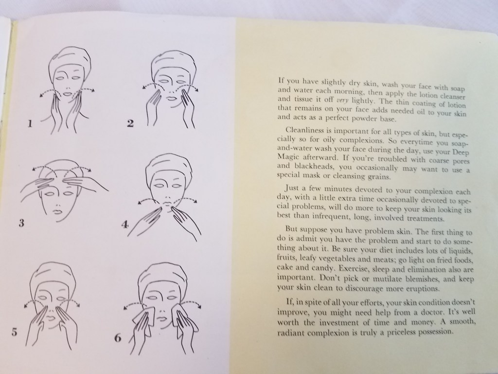 Ending off the book we have a little on our skin. Lotion is recommended to keep your hands looking fresh and young; apply every night and after getting your hands wet. For your face experts recommend washing with soap and water as well as a “lotion cleanser”. If you’re suffering from acne they then suggest that you check that you have a healthy, balanced diet and are getting plenty of sleep and exercise!